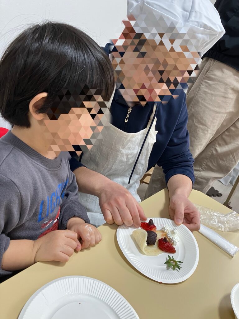 本番中、お子様が調理に集中している時間は、保護者様とスタッフがゆっくりお話しできる貴重な時間となりました。